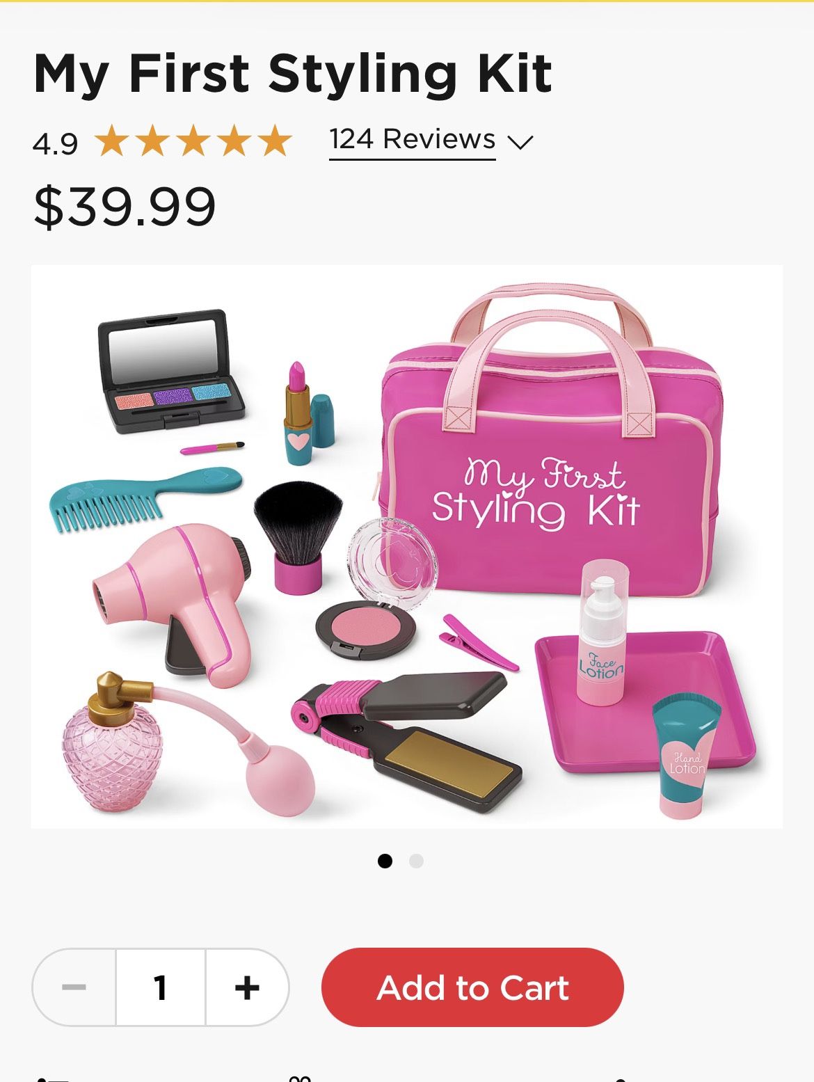 Pretend play has never felt more real than with our ultimate styling kit! From a blow-dryer that whooshes to a perfume bottle that sprays air, the kit is packed with everything little stylists need for hours of make-believe fun! The kit comes with 14 pieces, including a chic carrying case. Durable vinyl carrying case measures 9" in length.
