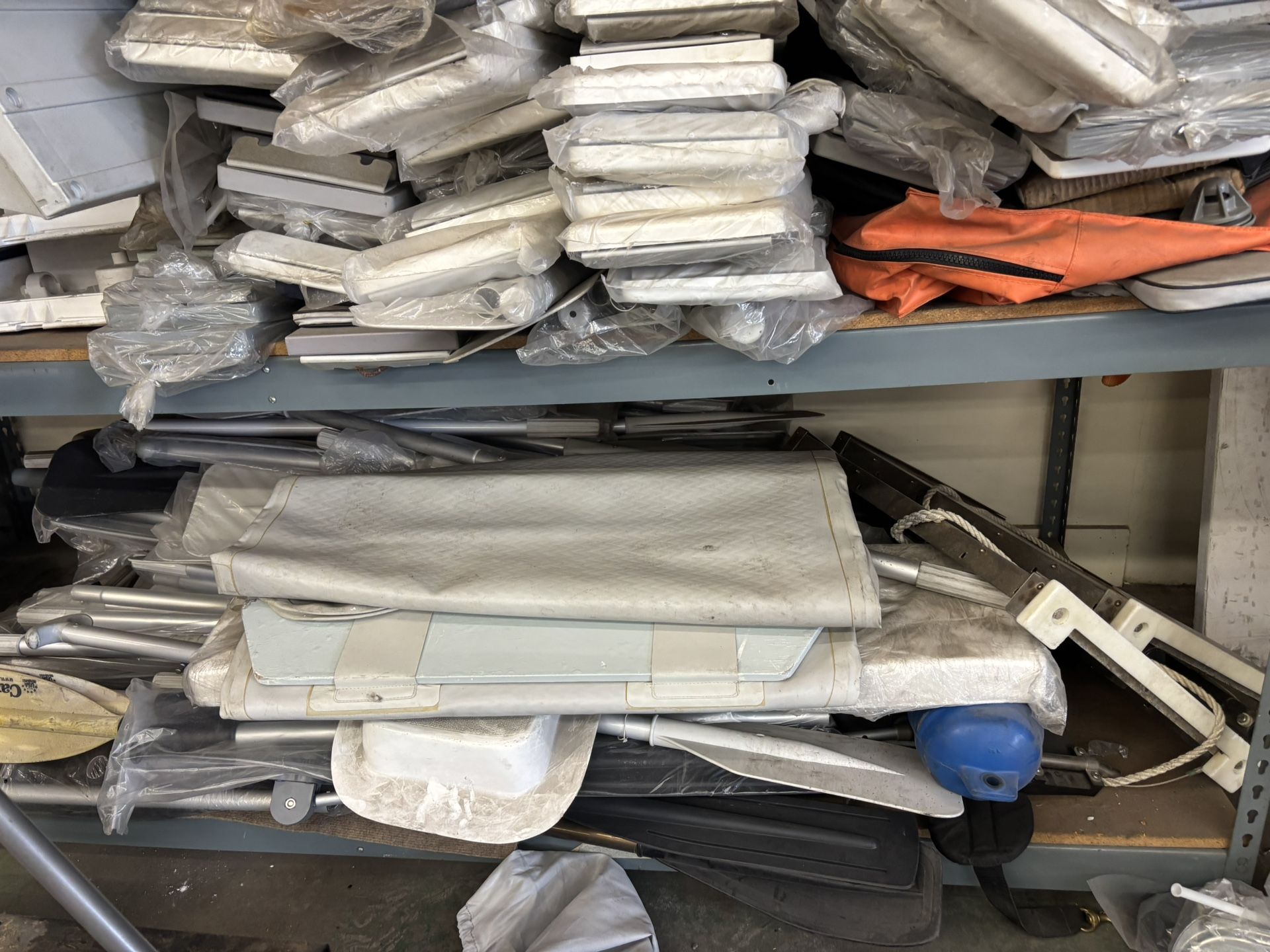 Misc boat parts , racks , carts , two trailer , tables , boat