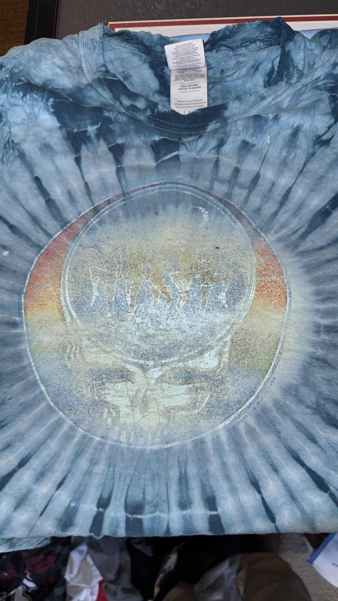 Vintage 1996 Grateful Dead Steal Your Face Rainbow Dancer Tie Dye Tshirt / 90... Rainbows · T-shirts · 1990s Fashion ABOUT: Cool soft and broken in 1998 Tina Carpenter designed blue tie dye Steal Your Face variation with rainbow dancers on the front. TAG: No tag ... Shirt is definitely worn and you can tell its had its fair share of better days, however the shirt is in great shape for being as old as it is and there are no major condition issues that are noticeable. Feel free to ask any questions if you’d like and i will get back to you as soon as I can. Thanks for looking 👀👀