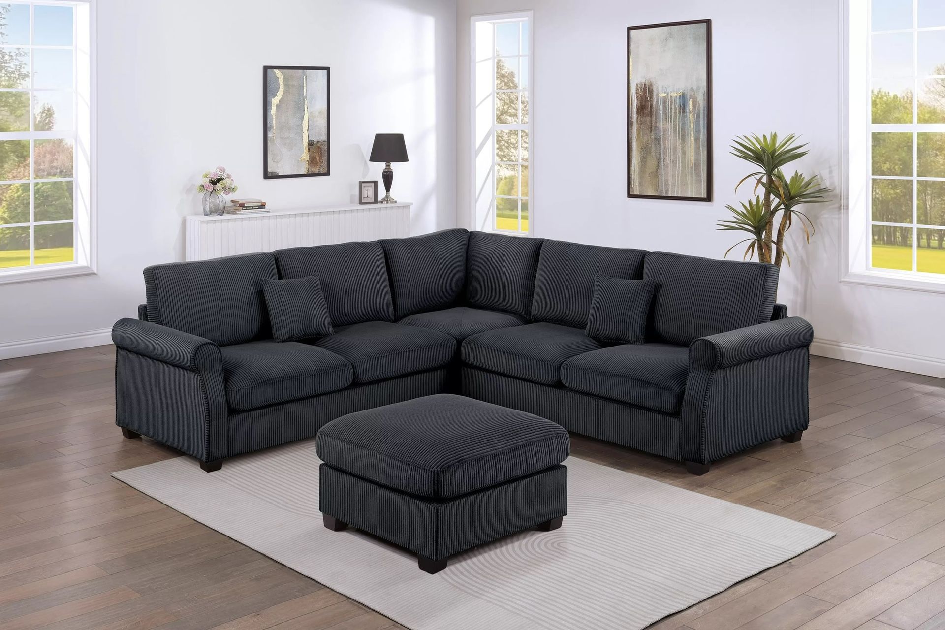 New Black Sectional Sofa With Ottoman, Free Delivery ✅ Modern Black Sofa Sectional