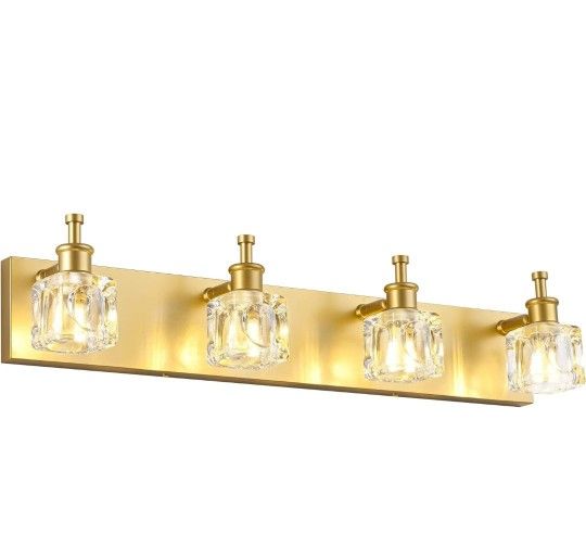 (New in Box) PRESDE Modern Crystal Bathroom Vanity Light 4 Light Gold Vanity Lighting Bathroom Light Fixtures Over Mirror(Exclude Bulb) /2-WS-2686