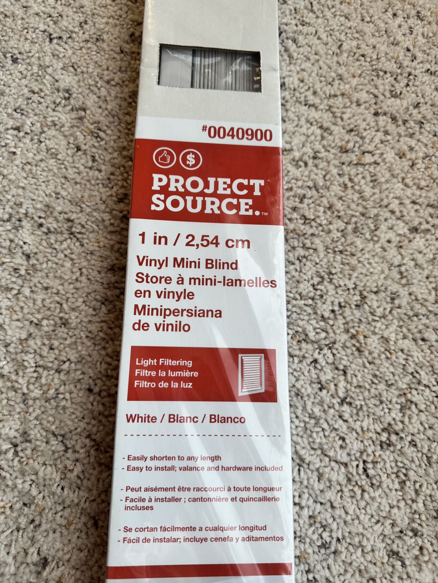 Upgrade your space with this Project Source vinyl mini blind, perfect for kitchens, bathrooms, offices, or anywhere you want simple light filtering and privacy. ✔ Size: 1 inch slats / 54 cm (21”) ✔ Color: White ✔ Material: Durable vinyl ✔ Light Control: Light filtering ✔ Easy Install: Includes mounting hardware ✔ Custom Fit: Easily shortened to desired length This blind is moisture-resistant and easy to clean, making it ideal for high-humidity areas. Brand new in original packaging — never installed. 63rd & Fairview- Darien Porch pick up Cash only Cross posted