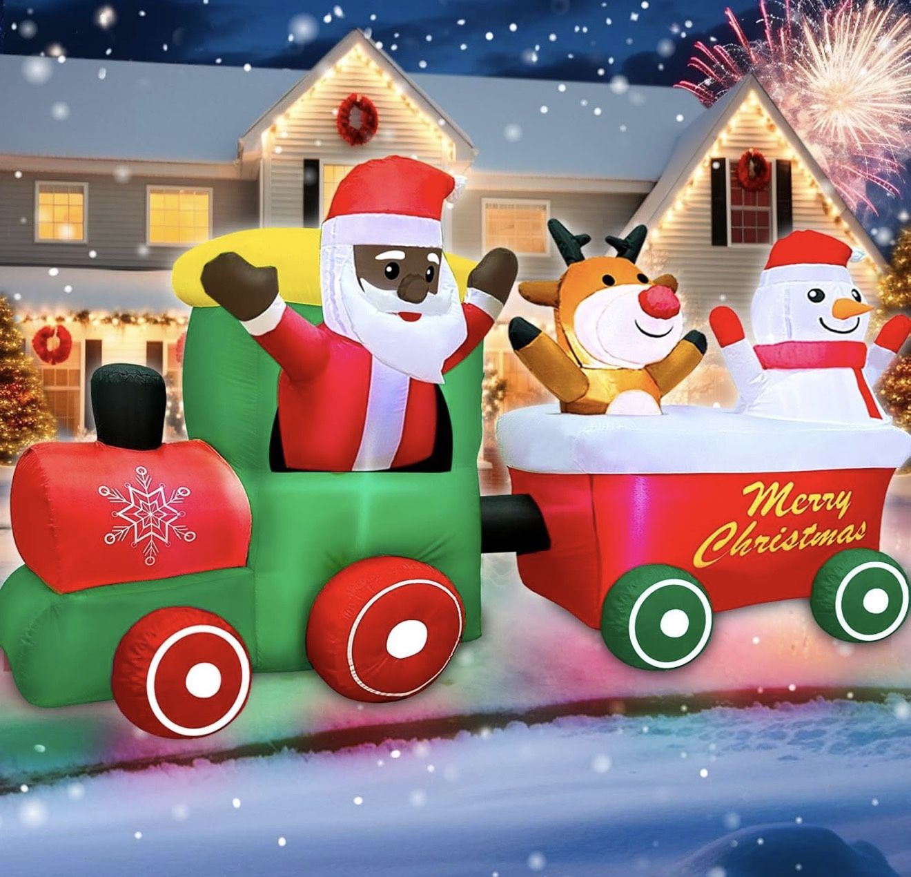 7 FT Long Christmas Inflatables Train Outdoor Decoration