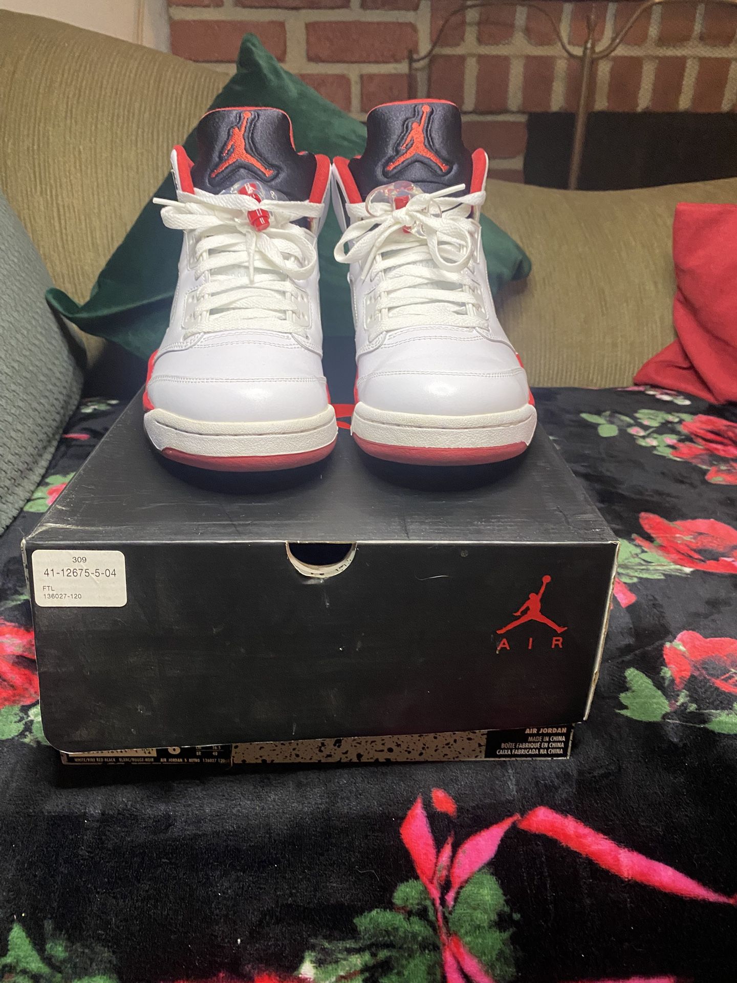 Used 1 time vnds black tongue fire red 5s from 2013. Mens size 8.5. $220