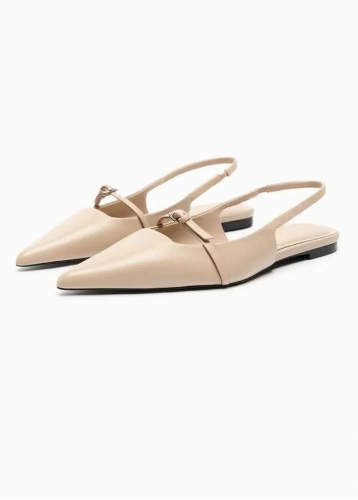 ZARA Slingback shoes Nude Cream Pointed Flats Leather Beige Size 7