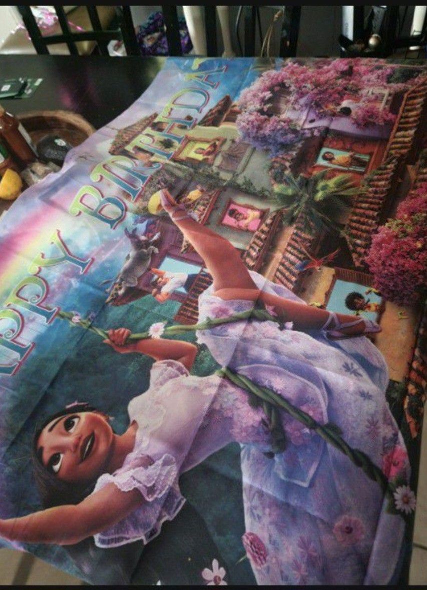 2 birthday banners Cardboard characters Happy birthday sign. Also have a encanto "Toss the sack " game banner. But it's missing the sacks. Will include it if you want it .