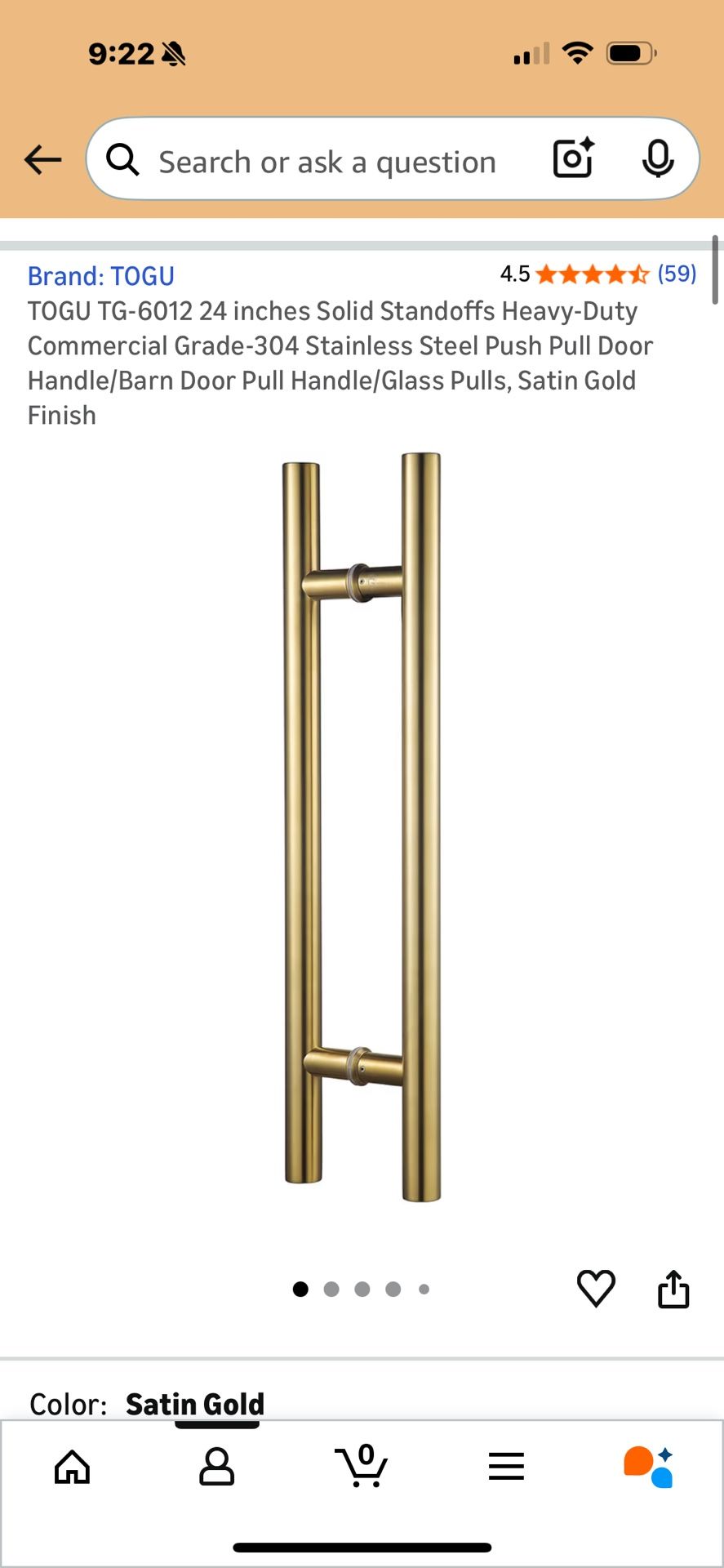 Material Stainless Steel Brand TOGU Color Satin Gold Style Handle Pull Product Dimensions 23.62"L x 1.26"W Exterior Finish Gold Quality 1.2mm Wall thi
