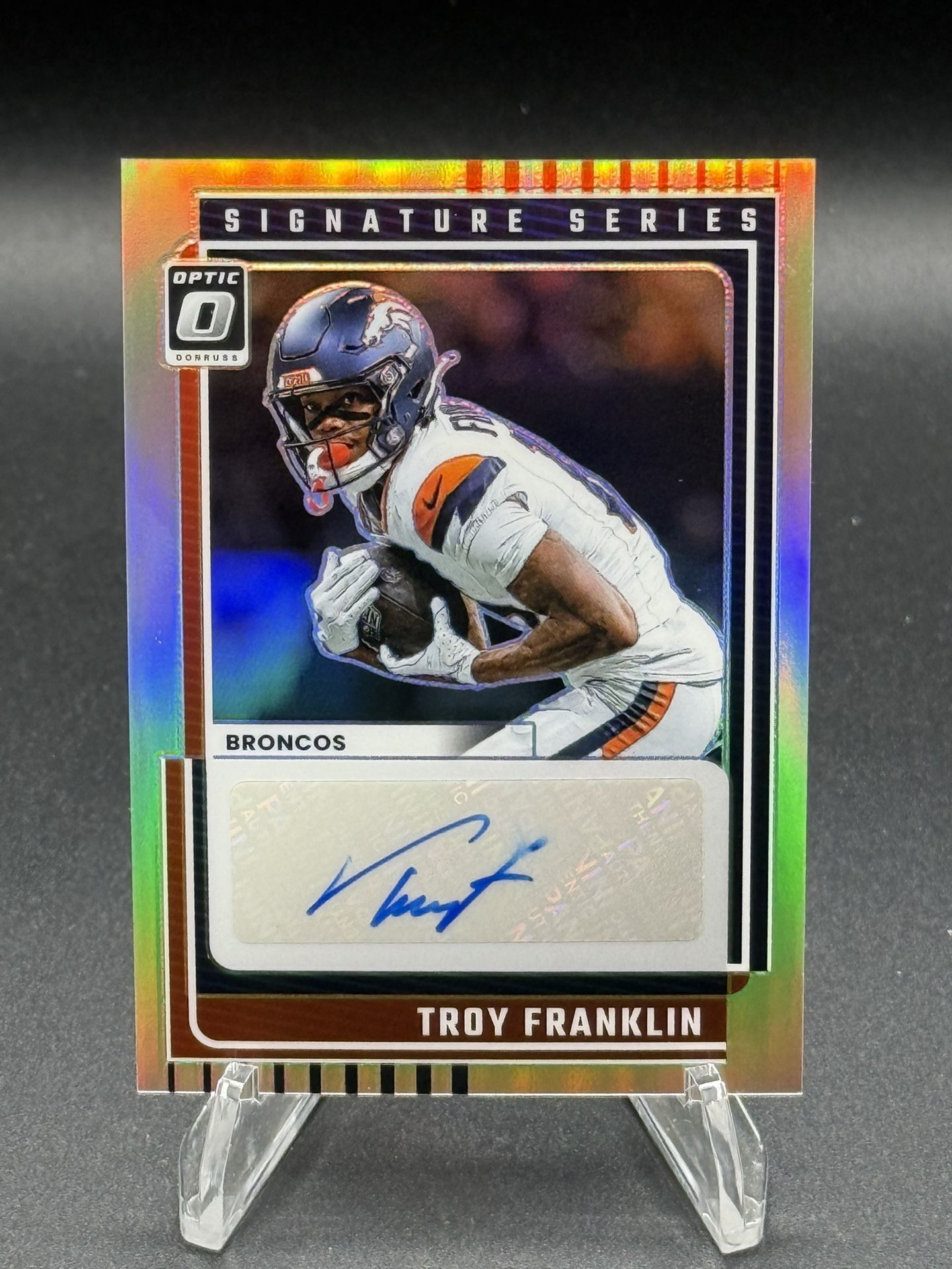 * I make no guarantee cards will receive a specific grade * Any significant flaw noticed will be mentioned and shown with pictures * No stock photos used - the card pictured is the card you receive - please look at every picture FB-22 / TDB / Denver Broncos / Football Raw Auto / BIN
