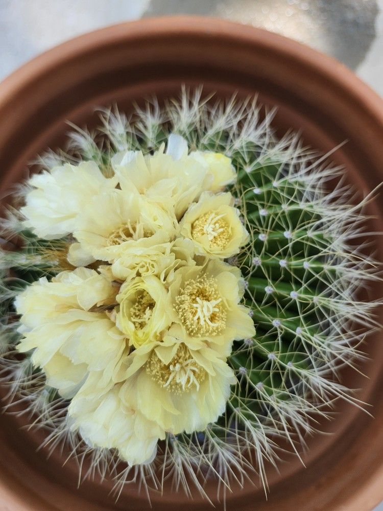 Beautiful well fertilized healthy blooming parodia cactus yellow in color has babies.