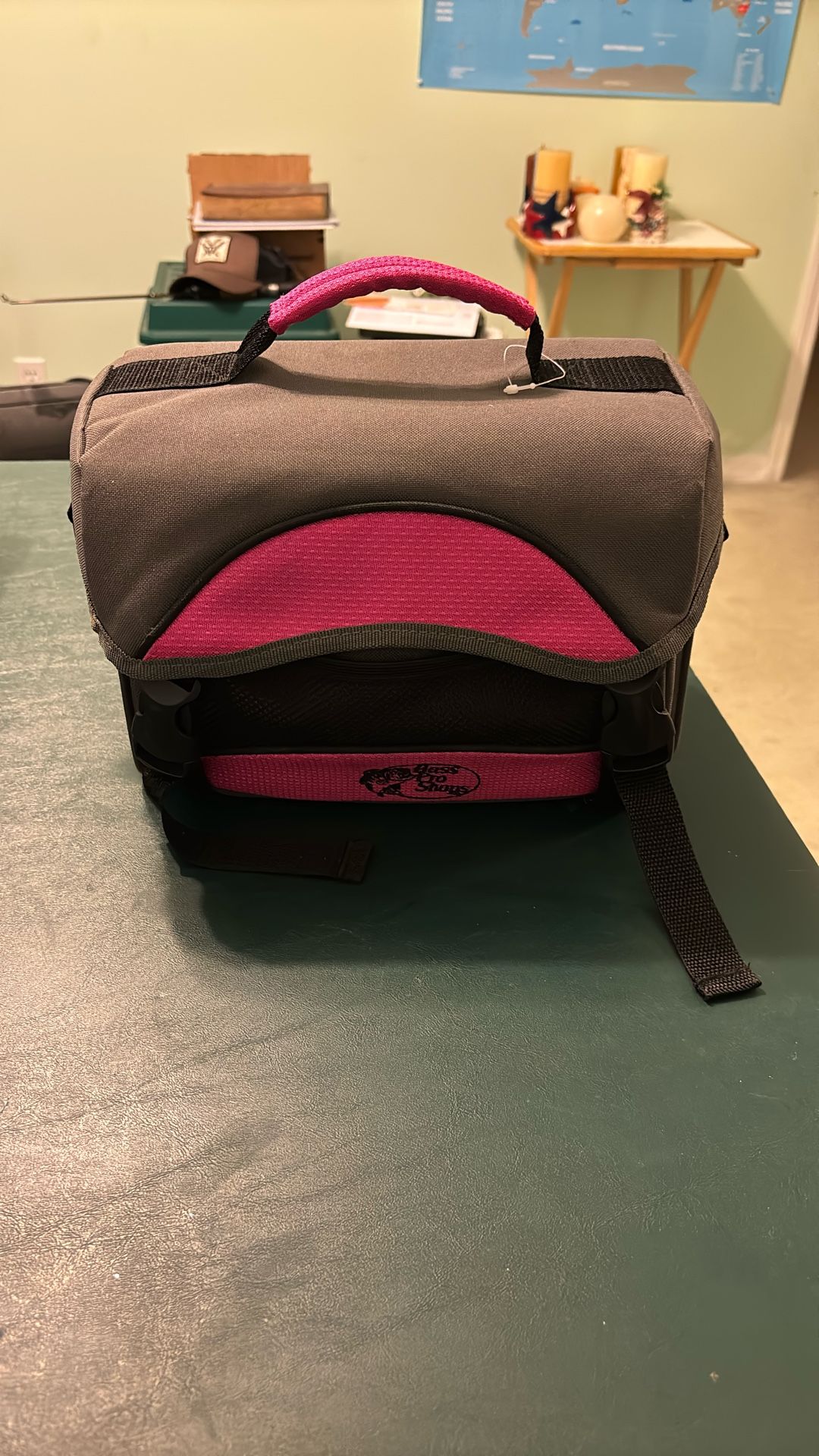 See pics. Like new Bass Pro Shops 3 tray tackle bag with strap