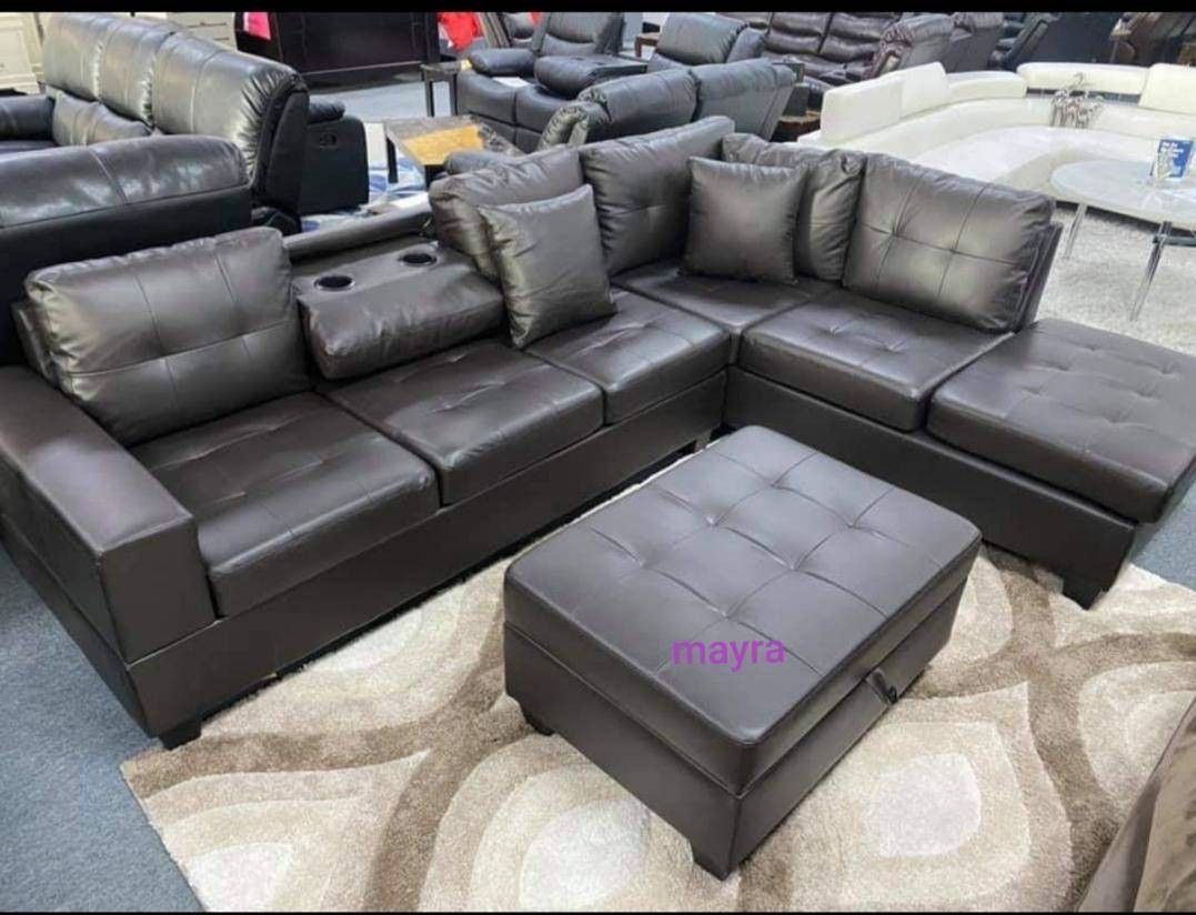 ,,, Black Faux Leather Reversible Storage Ottoman With Sectional,seccional,Couch,livingroom/Delivery Available, Financing Options