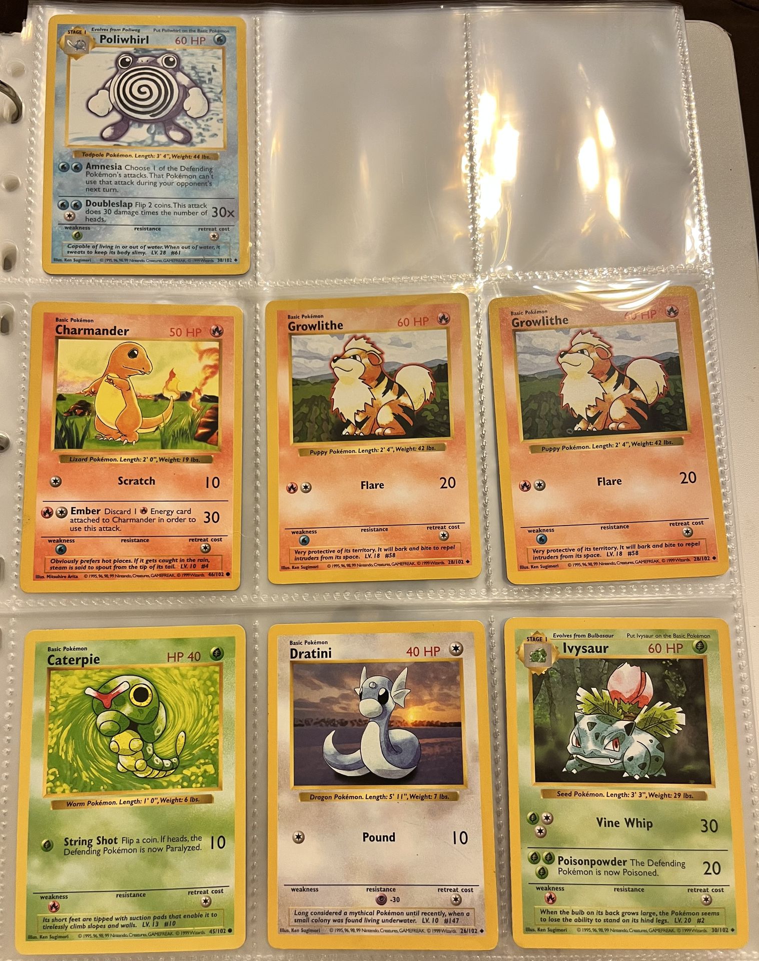 7 Vintage Shadowless Base Set Pokemon Cards in Excellent Condition