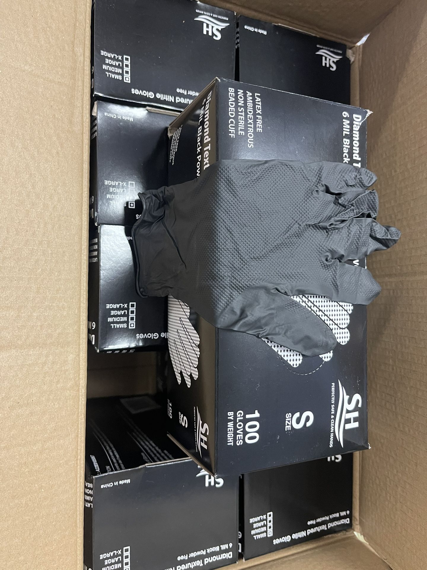 6 mm powder, free, black and orange latex glove size small 1000. Let me know how many boxes you need.