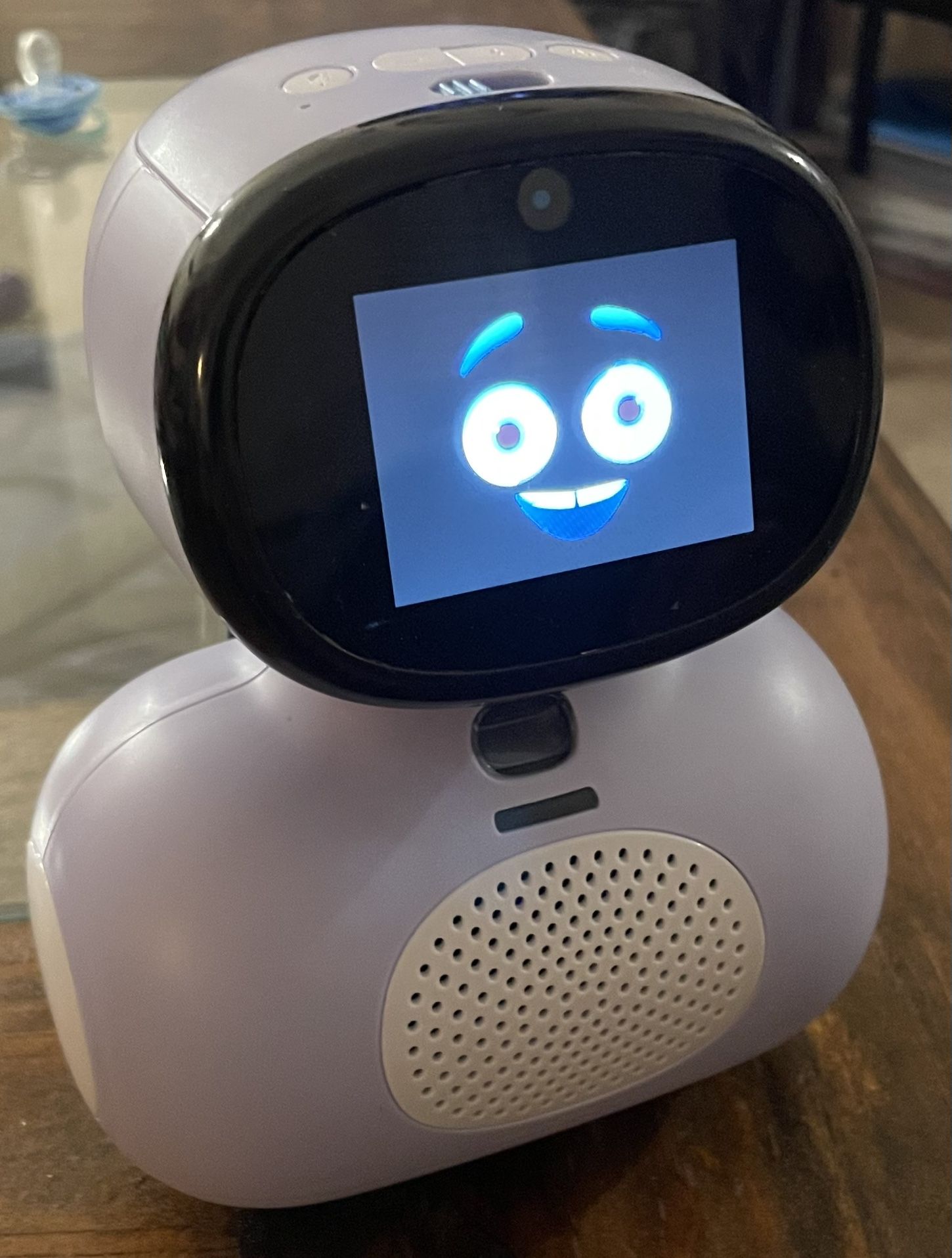 This is a Miko Mini AI Robot Companion. Fosters STEM Learning & Education | Packed with Games, Dance, Singing | Child-Safe Conversational Learning | Ideal Gift for Boys & Girls 4-8 Tested and working. Robot has been de-registered and is ready for you to register after the initial power on. You will see a screen with a QR code that you can use to register with the app. These are over $120 online, but you can get this one in great shape for only $50! Details: Advanced AI Learning: Miko Mini uses deep-learning AI to continuously learn about your child, creating personalized educational plans that enhance reading, writing, math, and communication skills. Engaging STEAM Content: Packed with diverse educational STEAM content, Miko Mini boosts children's engagement with academic activities by 55%, sparking curiosity and fostering exploration. Social & Emotional Growth: Miko Mini helps kids develop social skills, empathy, and emotional understanding, promoting positivity and self-esteem through interactive learning. Safe & Secure: Miko Mini is kidSAFE COPPA+ certified, ensuring enhanced encryption and a closed system to protect your family's data. Interactive Playtime: Equipped with a wide-angle HD camera and high-tech sensors, Miko Mini offers AI-infused games like Freeze Dance and Hide and Seek, turning playtime into a fun and active experience. Parent-Friendly App: The Miko Parent App allows parents to set goals, track progress, customize settings, and ensure security, streamlining the parenting journey. Exclusive Content: Miko Mini provides access to exclusive content from renowned brands like Paramount Consumer Products and Disney, available on tablets and iPads.