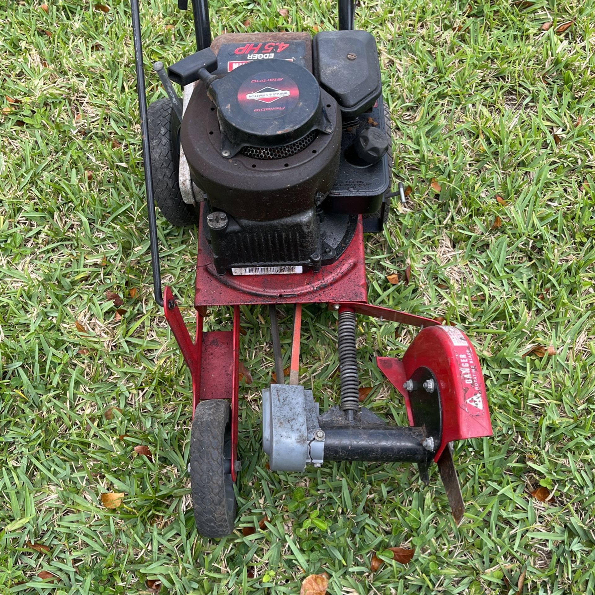 Red and Black Craftsman Edger 4.5 HP Briggs and Stratton built Runs great no problems Clean