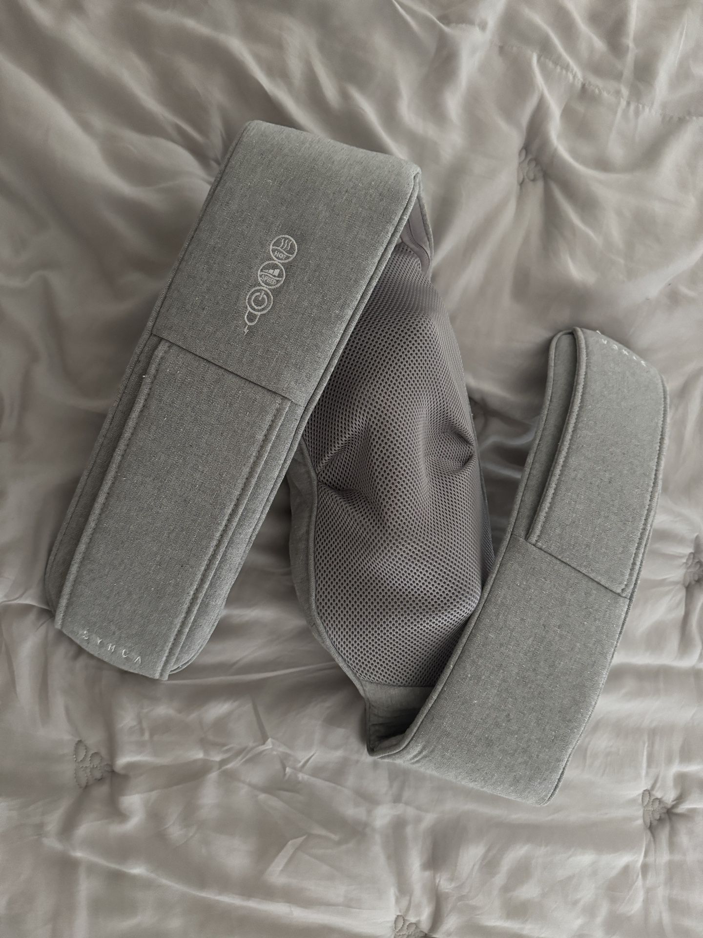 Like new. Never used. Only turned it on once to make sure it works before I sell it. As the picture shows, fabric is clean and has no stain/discoloration or signs of uses. Works fine. You can adjust clockwise/counter clockwise move + speed + temperature.