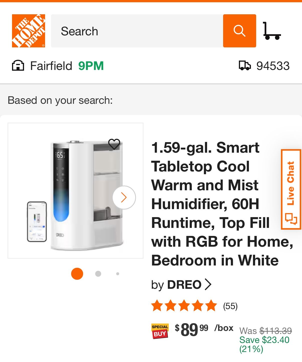 Brand New 1.59-gal. Smart Tabletop Cool Warm and Mist Humidifier, 60H Runtime, Top Fill with RGB for Home, Bedroom in White Model: HM713 Retail: $90-$115 Asking: $65 OBO