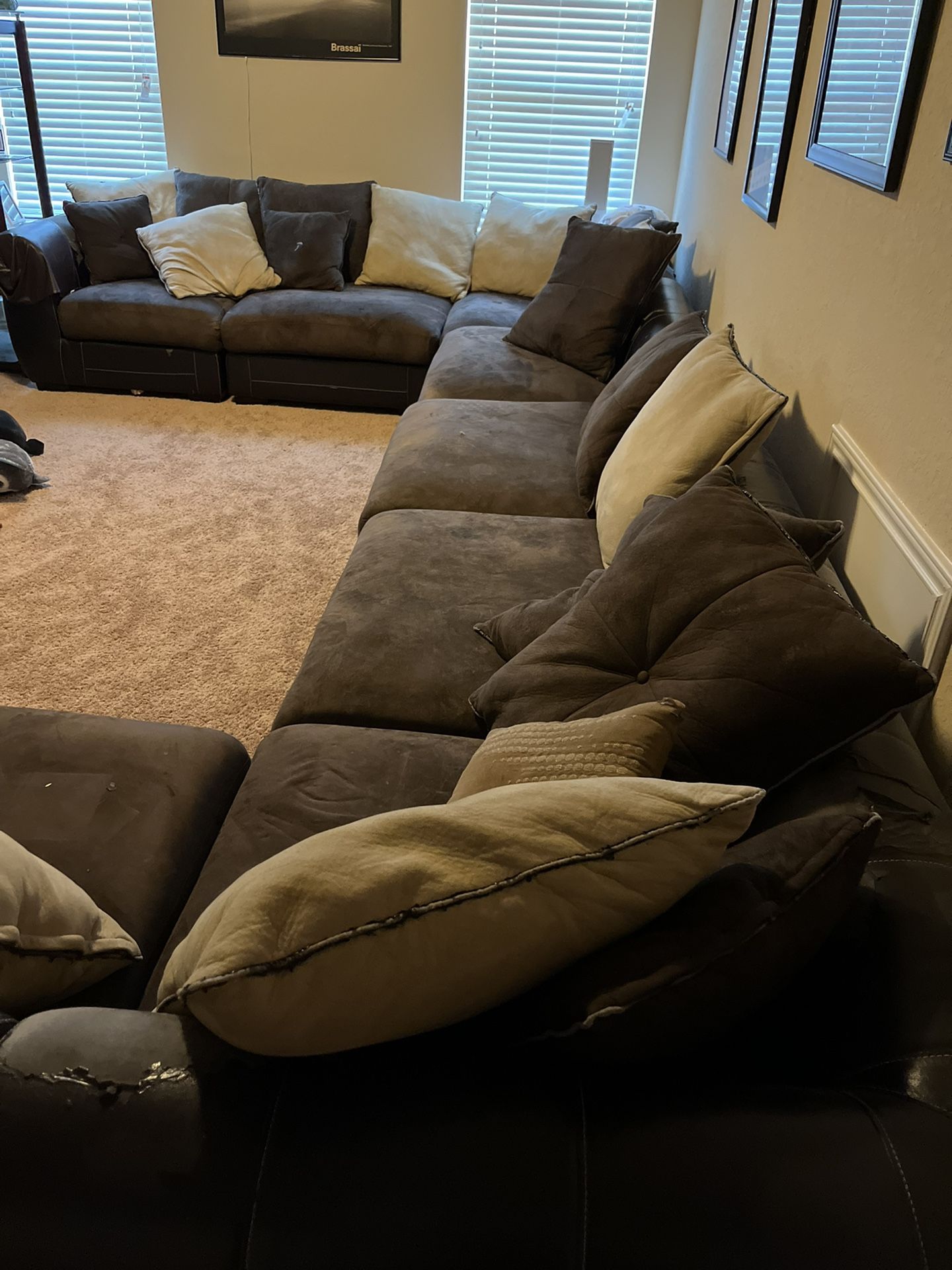 Oversized sectional for sale must pick up does have leather wear as shown in the photos