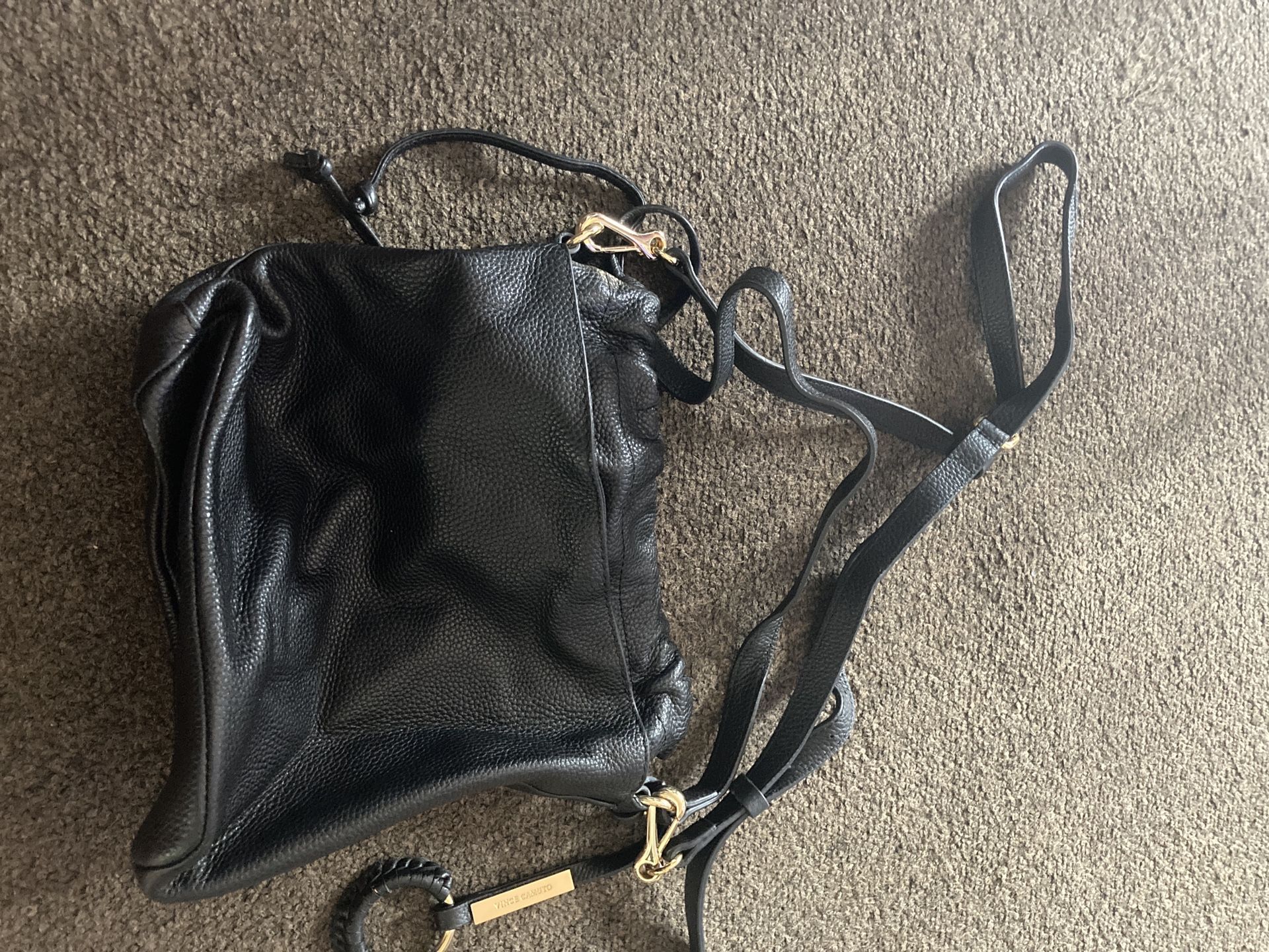 Vince Camuto Black Pebbled Leather Drawstring Bucket Hobo Bag Purse. Used Only Once