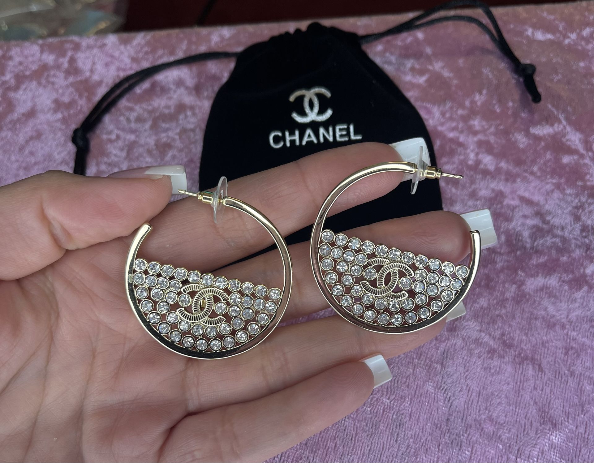 New hoops 18k stainless steel gold comes with bag