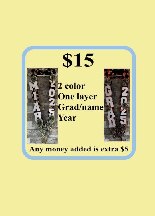 Custom made graduation leis , now accepting orders. For any questions please message me, I am also accepting bulk orders as of now. IG- a.a_creationss_