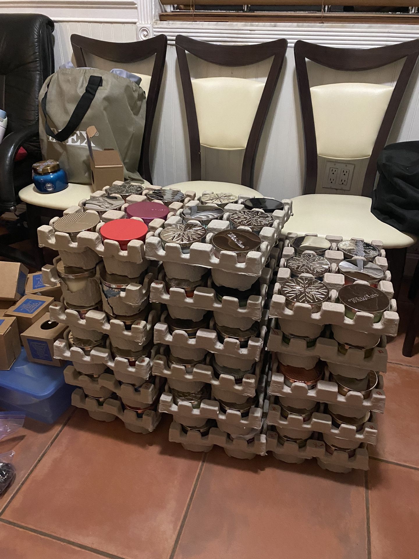 Brand new unused three wick candles for sale - bath and body works - white barn - total of 148 candles Can sell whole or by lots, message with any questions!! Vendo velas nuevas de Bath and Body Works y de White Barn nuevas sin usar - Hay 148 velas en total y se venden individual o en cajas - escriben para más detalles!!!