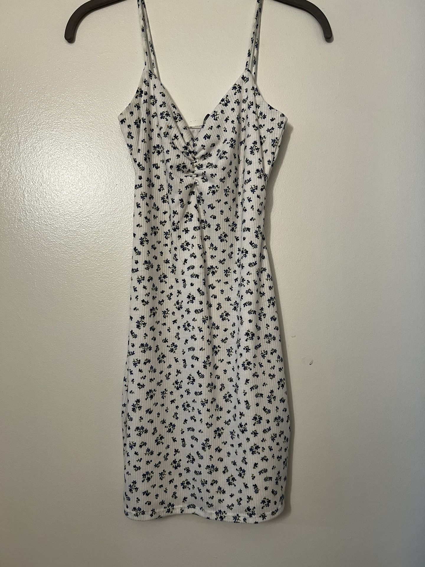 Form-fitting but stretchy Windsor Mid-thigh length, maybe a little shorter Size- small, possibly medium (very stretchy material)