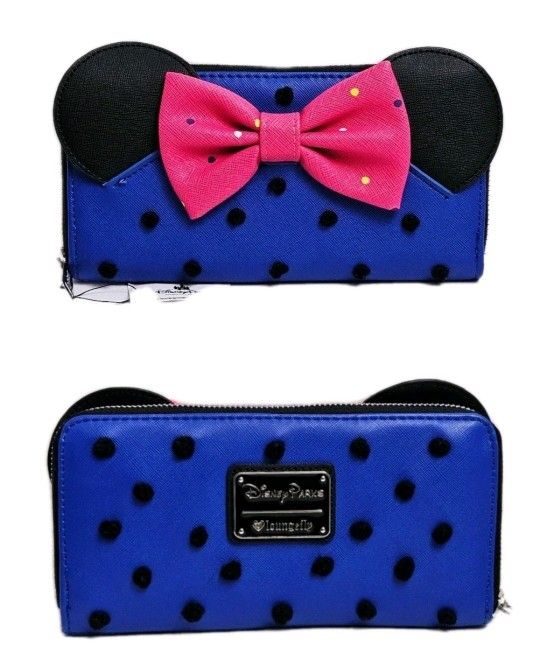 NWT Disney Parks Loungefly Blue Rock The Dots Minnie Mouse Wallet