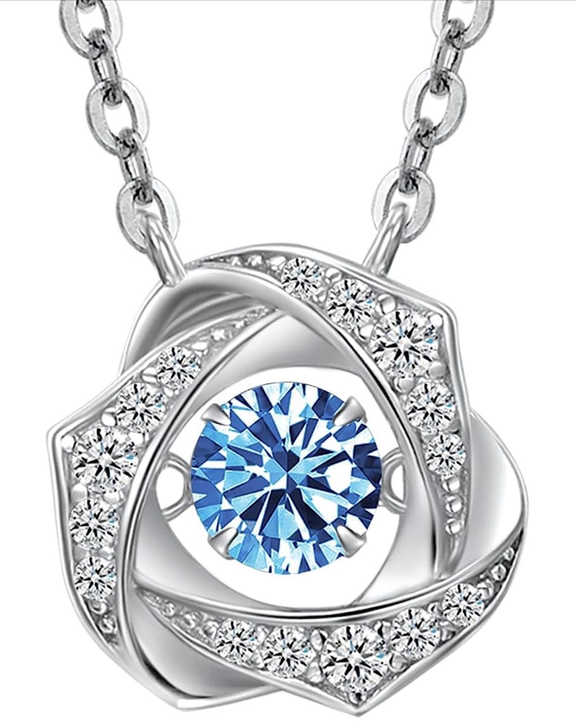 VIGG Sterling Silver Dance Necklace for Women,Floating Blue Diamond Birthstone CZ 5A Pendant Dainty S925