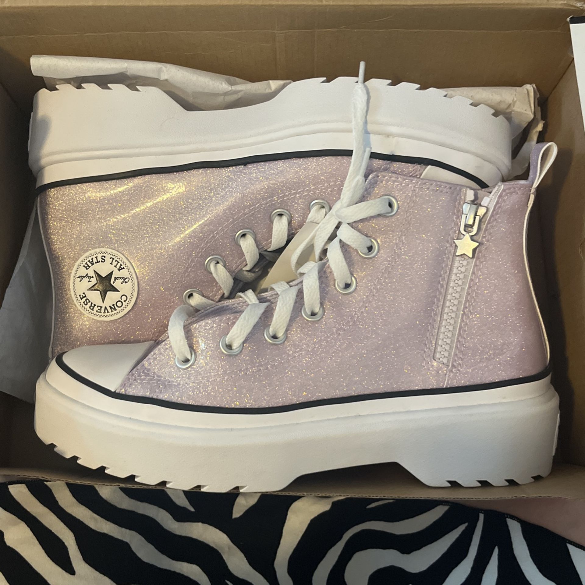 Brand new, never worn, 5.5 bog kids size, violet with glitter
