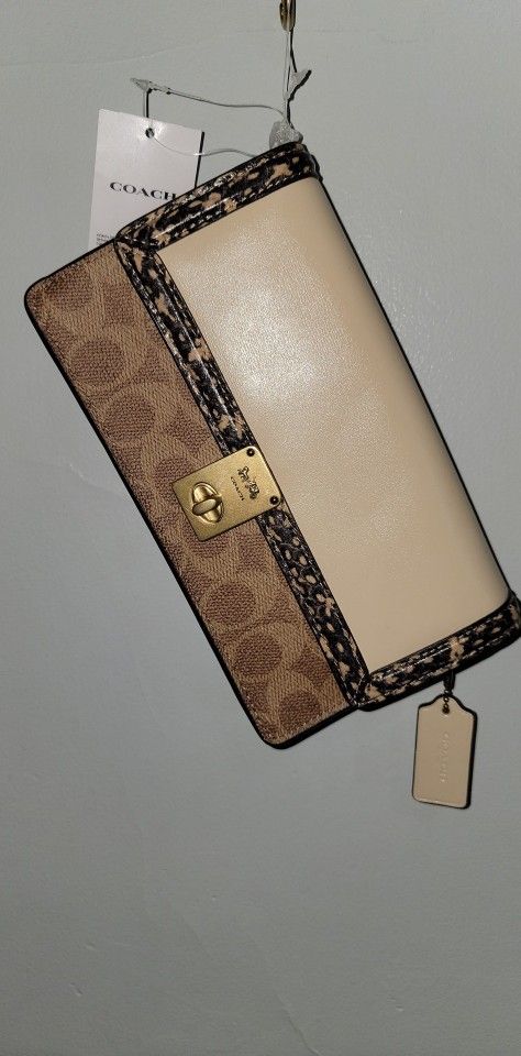 Retail Value: $350 New Coach-Hutton womens crossbody bag with brass colored chain and snakeskin accents. A great gift for a special someone. Retail Value: $350