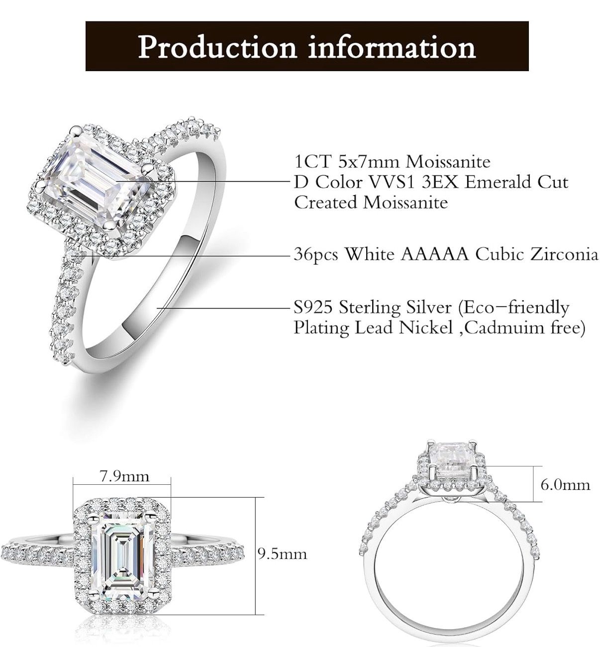 1Carat Moissanite Ring , S925 Sterling Silver Lab Created Diamond , Halo Emerald Cut. BRAND NEW Perfect for Valentine's Day ! Mother’s Day ! Etc .. size 6