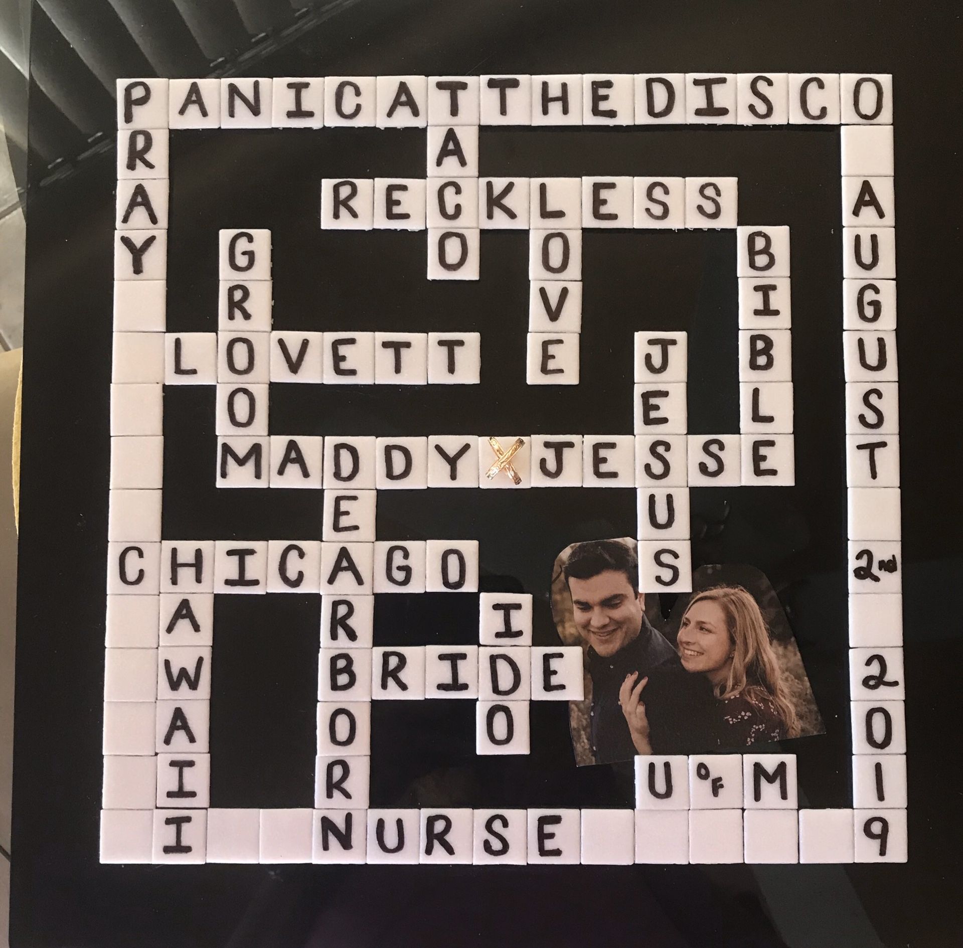 Personalized Custom Crossword Puzzle Black Lucite and Letters on white tile You supply words, we fill in as many as we can. Holiday, birthday, wedding etc 15 x 15 For coffee table, great conversation piece Free shipping
