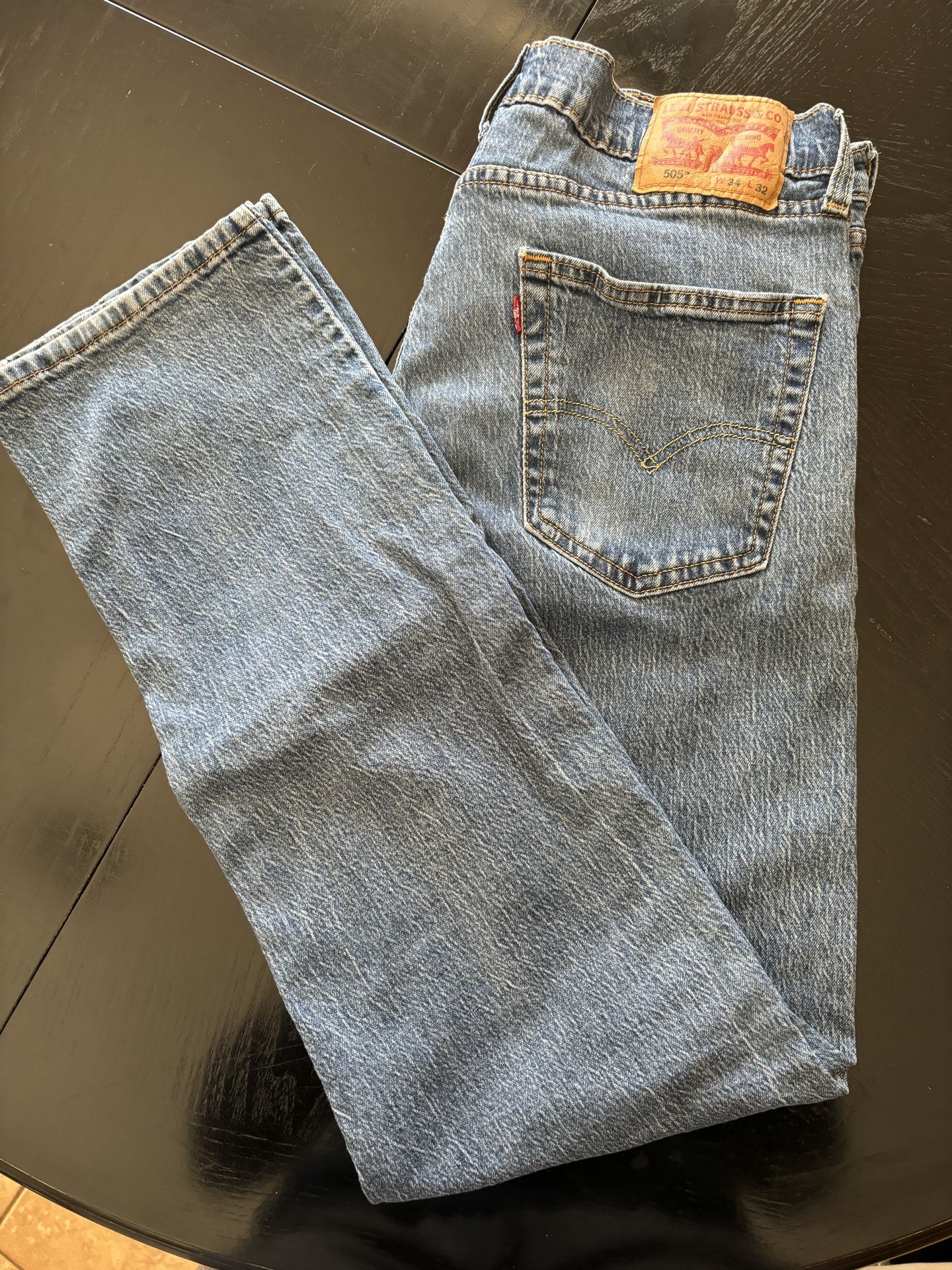 Levi Jeans 505 size 34W 32L Jeans have no rips and are freshly cleaned! I have a bunch of jeans, khakis, and dress paints in this size so I am willing do a bulk deal. Feel free to reach out and we can set up a time for you to check out the other pants I have for sale.