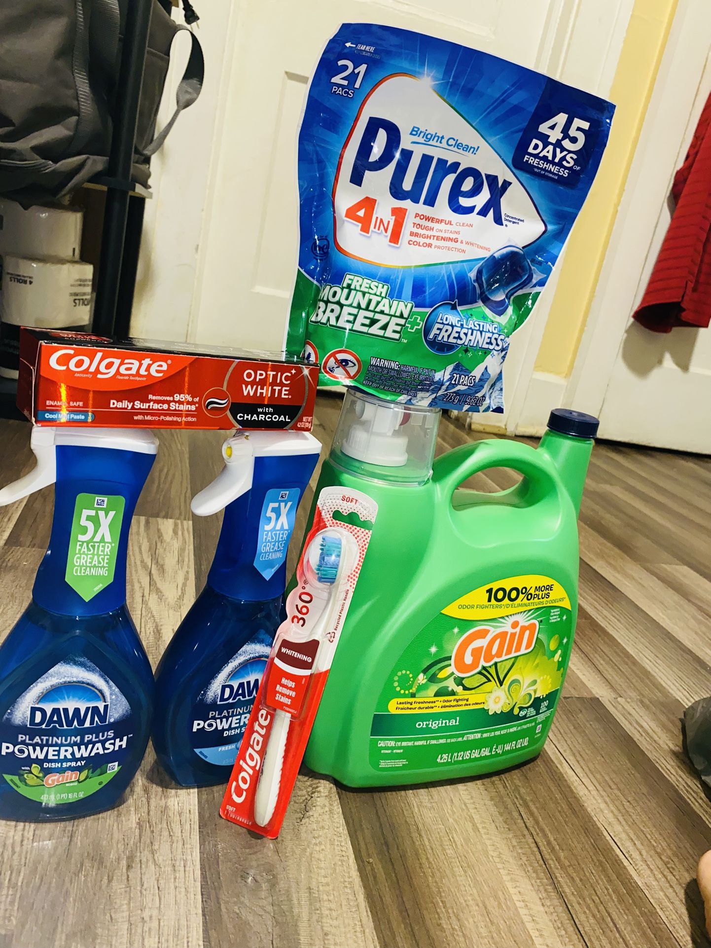Dawn,Gain,purex, Colgate And Brush Teeth