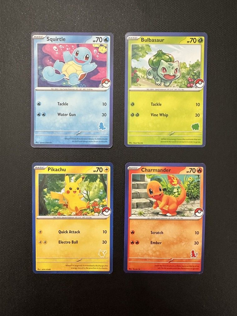 Complete set of 4 Blue Border starter Pokemon cards exclusively from the My First Battle deck kits released in 2023. Feel free to ask any questions