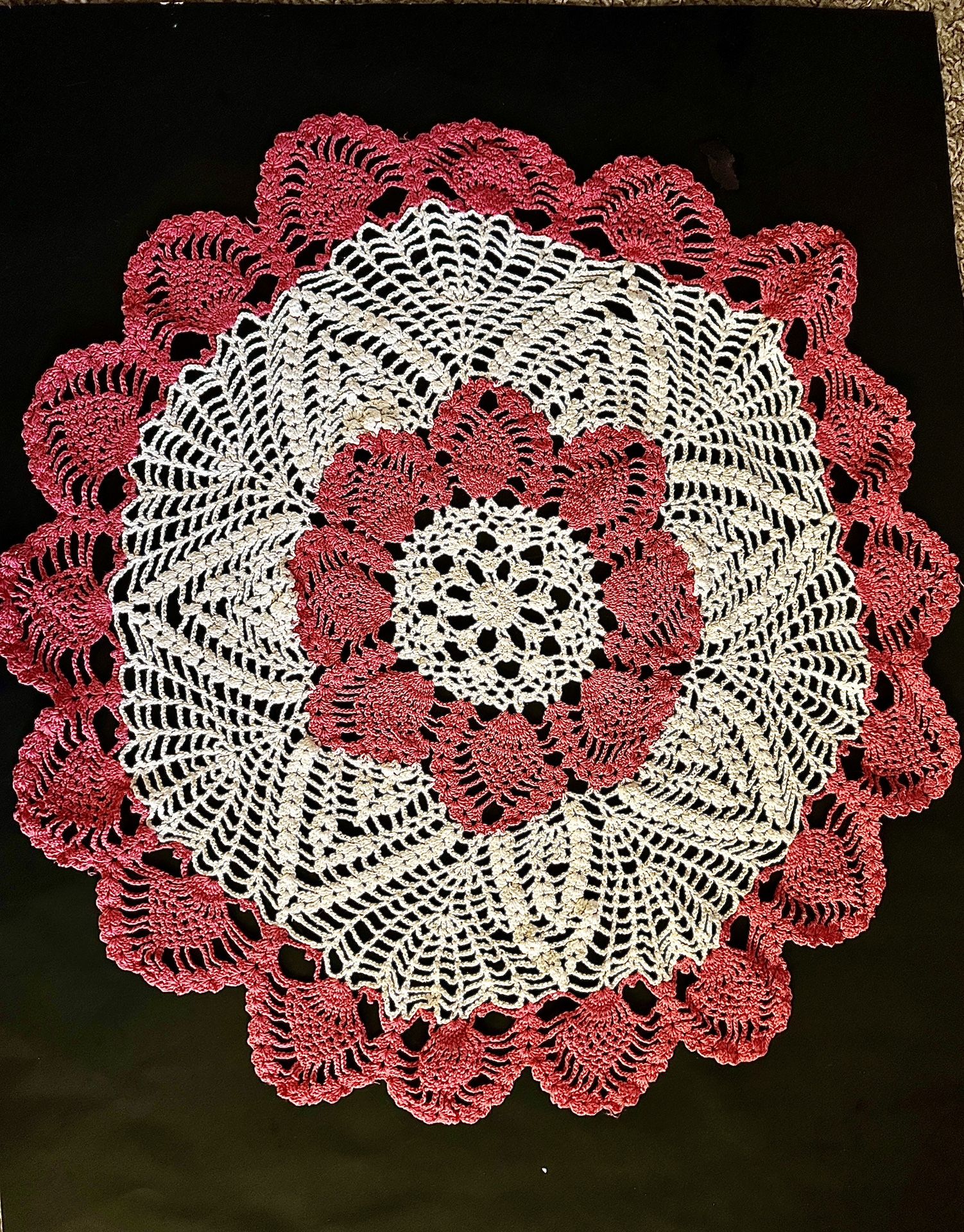 Vintage Large Pink & White Flower Doily