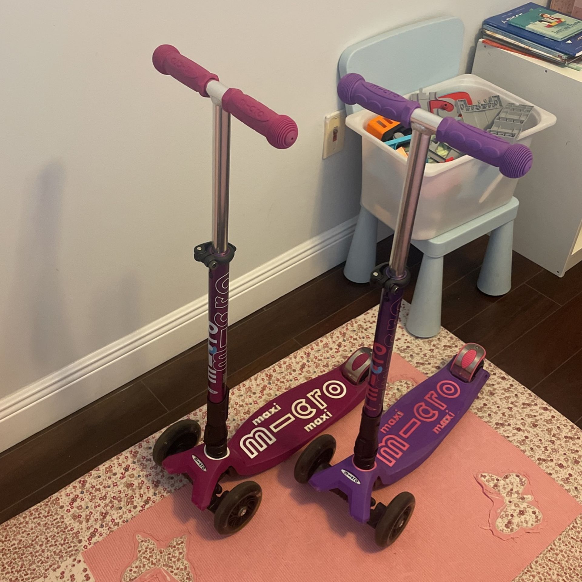 To Micro maxi kick board scooters with light up front wheels. Impeccable condition. Will sell for $80 individually or $150 for the two together