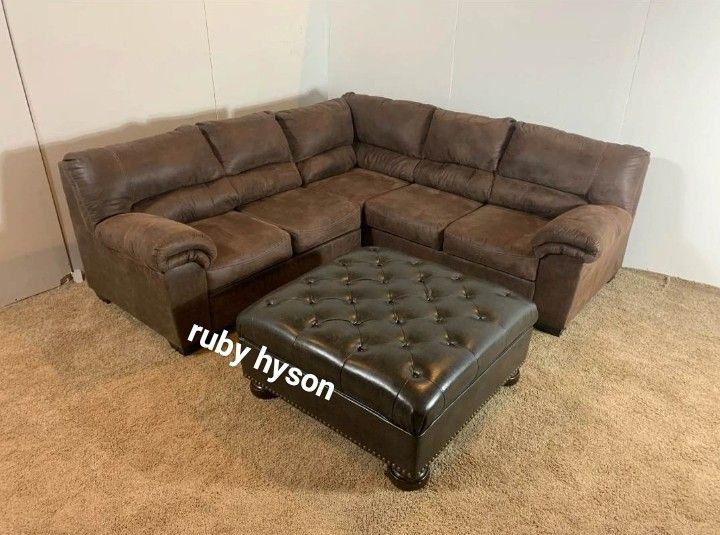 L Shaped Dark Brown Sectional Couch With Chaise| Brand New By Ashley Living Room Furniture Set @ Fast Delivery 🚚