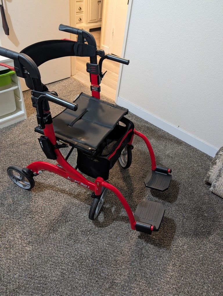 Nitro Duet Walker Rollinator. Duel Rollator & Transport Chair: The Drive Medical Foldable Rollator Walker and Transport Chair allows safe independent mobility or caregiver-assisted transport with ease Easily Adjustable Support: Adjustable back support and a 2-position contoured backrest provide personalized comfort and functionality while switching between rollator and transport chair Enhanced Turning & Maneuverability: Large 10-inch front casters and 6-inch rear wheels improve turning radius and stability, delivering smooth, confident movement across various surfaces Compact Folding Design: Foldable cross-brace frame allows space-saving storage, easy portability, and secure setup while maintaining a durable, lightweight design for everyday use Enhancing Lives: Our mission at Drive Medical is to lead the world with innovative healthcare solutions that enhance lives