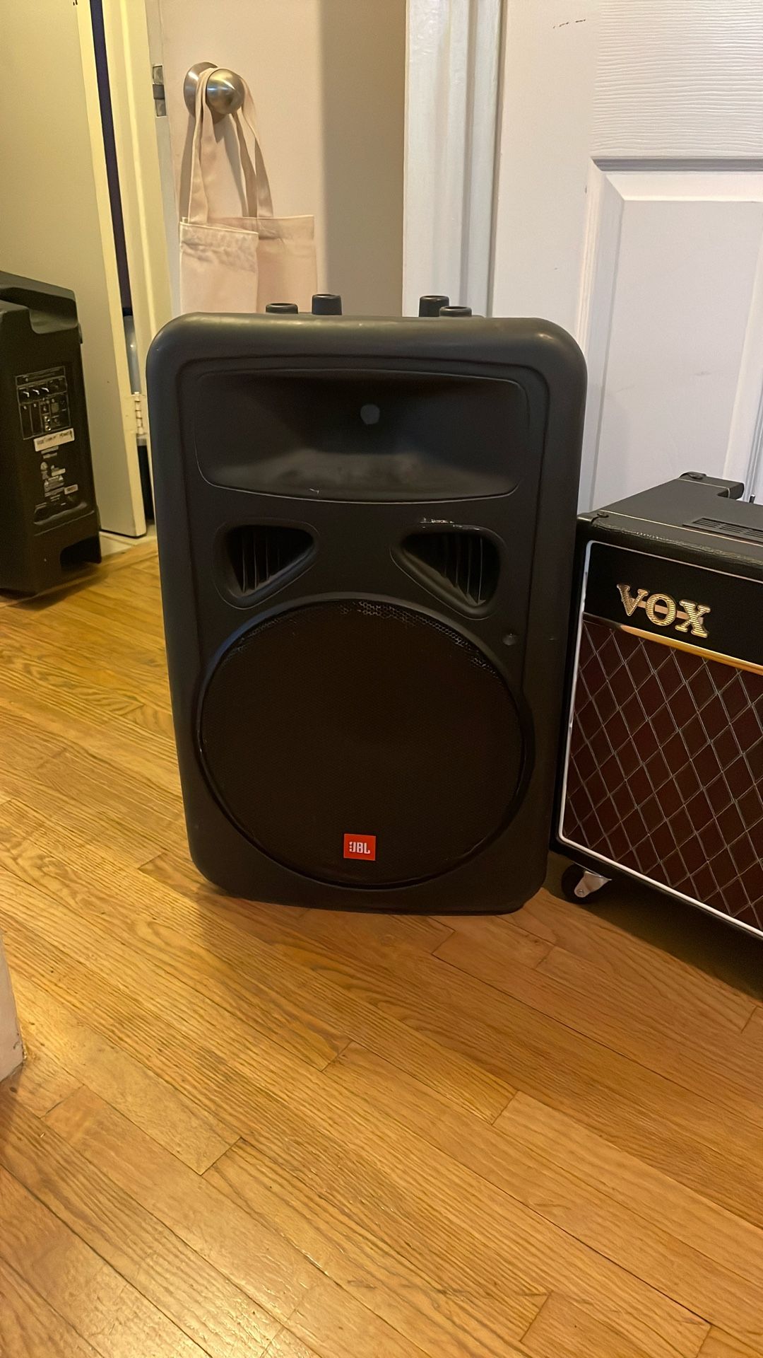 A VERY loud JBL powered speaker, used for live shows and some church sermons, still works perfect π Comes with power cable .