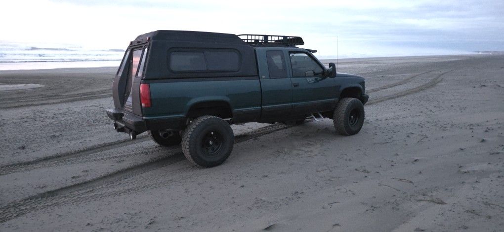 95 Chevy 1500 4x4 Z71 6in rc lift canopy Roof rack, 35in Goodyear Wrangler, 216k miles , oil change every 3000 miles full synthetic, good for overland ,hunting, fishing, does have trail hitch,backup camera, Bluetooth Kenwood, no rust under truck,new catalytic converter,new flow master 10 exhaust,new k&n filter,new windows tint,new led bulbs ,everything works ,new silicone wipers ,new brake booster, new windshield wiper motor, new Windshield Wiper cruise control hazard light switch SWA41751, Roof rack....possibly trade maybe straight trade maybe cash added trades.. https://offerup.co/faYXKzQFnY?$deeplink_path=/redirect/