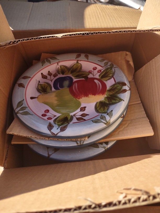 New Dishes, Bowls 8 Regular Plates, 3 Small Plates, 6 Bowls & 1 Chips and Dip Plater.
