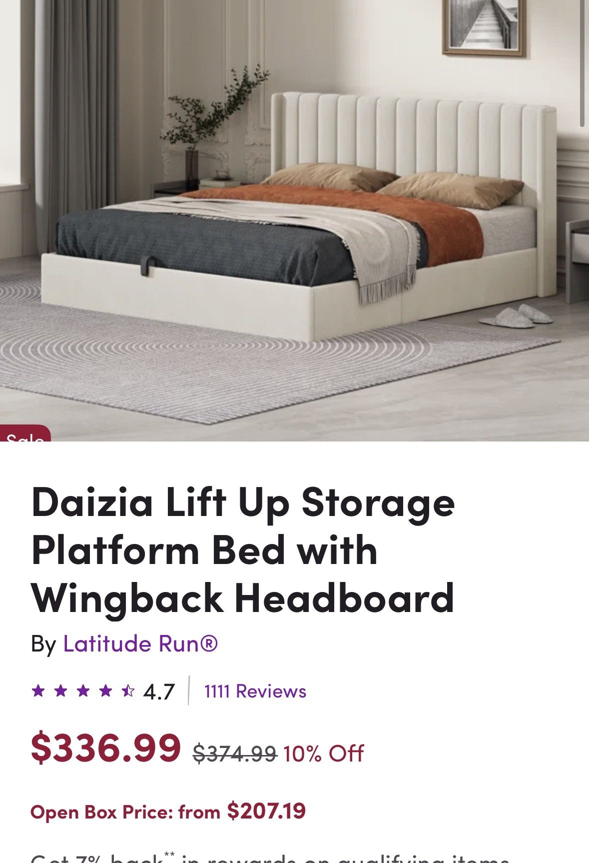 Pick up only. King size lift bed. I’ve had it for a year and a half. Sold together or separate Mattress is super comfortable. Will have deep cleaned prior to selling