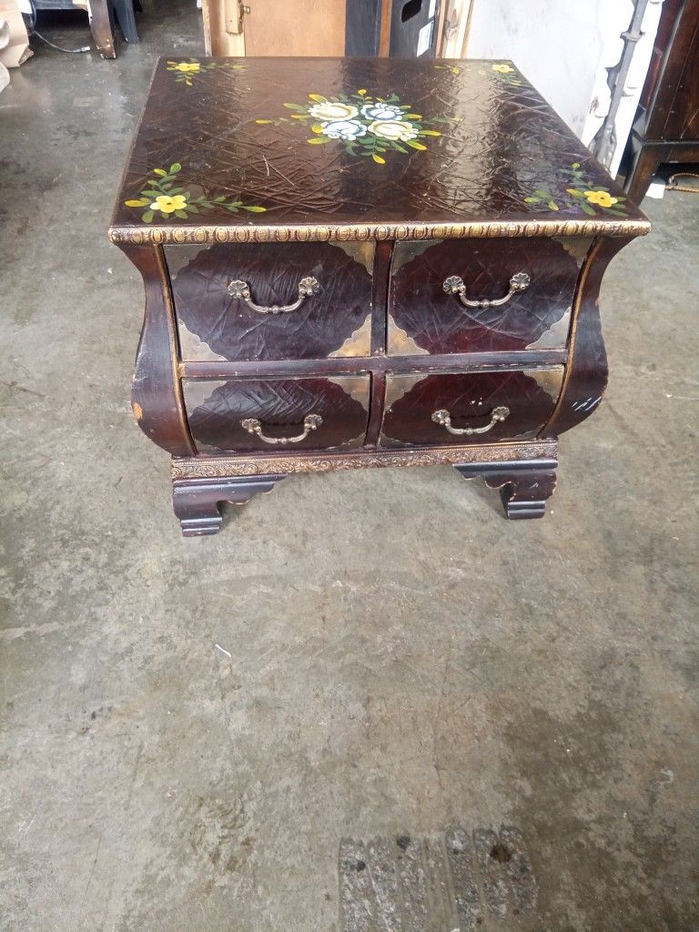 Don't know much about it except very old. 8 drawers which has 4 one side and 4 other. See pictures. Asking $100 o.b.o dimensions 21 1/2 x 21 1/2 and 18 1/2 tall