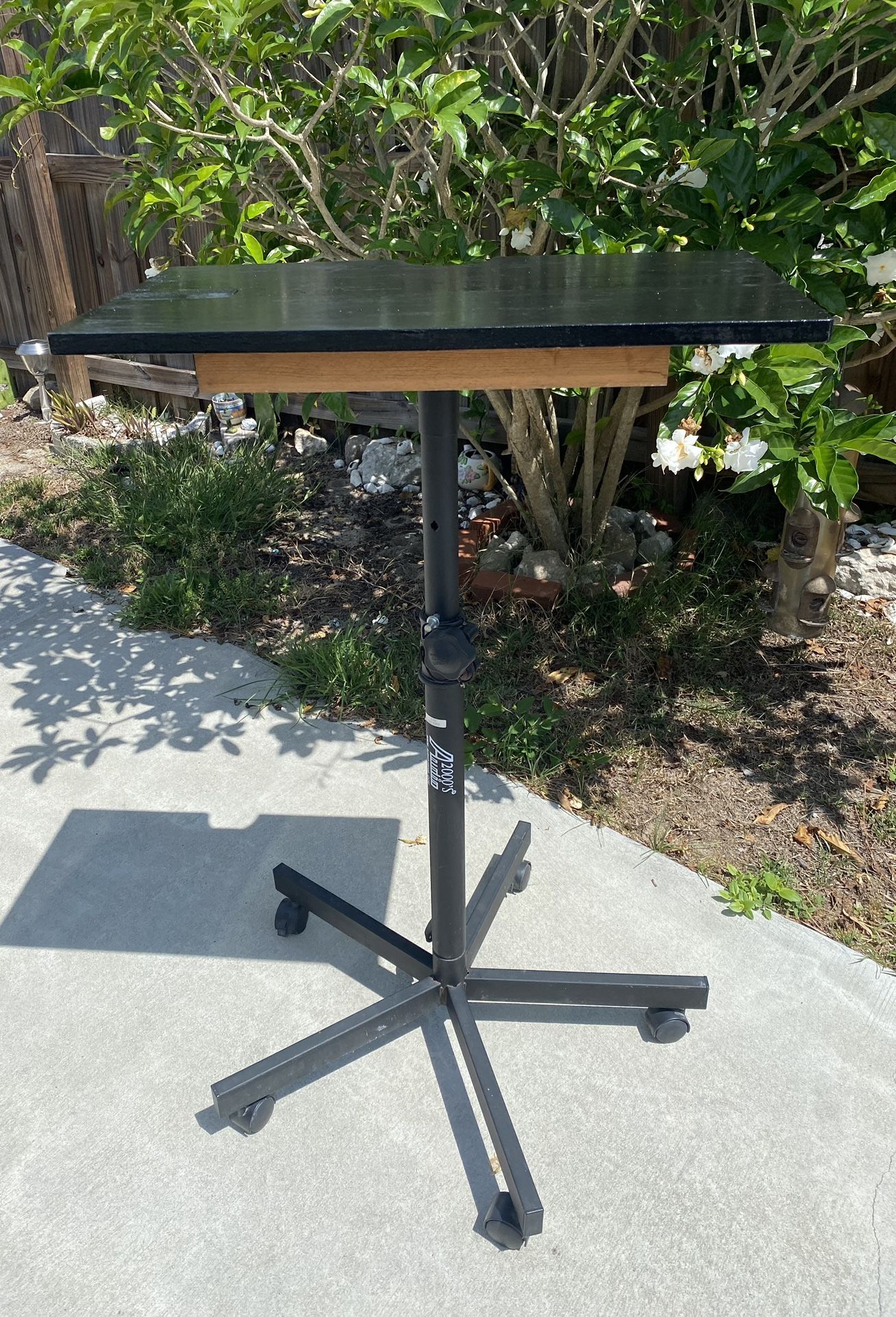 Portable Wooden Table /Metal Adjustable Stand On Lockable Rollers Black Audio 2000’S