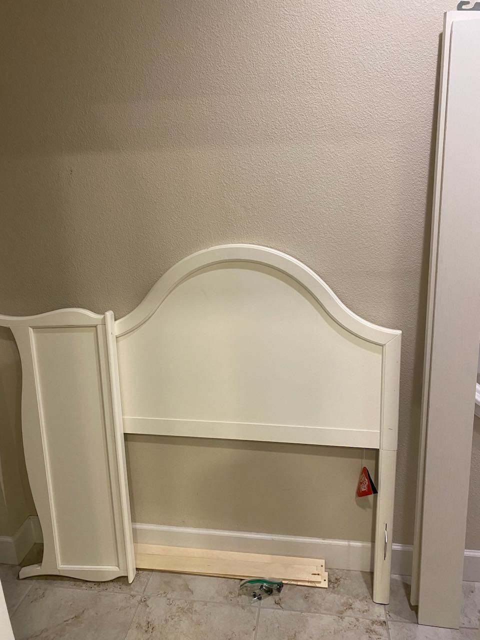 Coaster Home Furnishings Dominique Twin Youth Bed White Needs a box. Size: Twin Material: Wood Product Dimensions 80.25"L x 43"W x 25.25"H Style: Traditional Color: White Set includes: One (1) bed Materials: MDF and Asian hardwood Finish Color: White Assembly Required: Yes Is a foundation required: Yes Weight capacity: 300 lbs Number of slats: 4 pieces Pickup in Livermore, CA CASH ONLY!