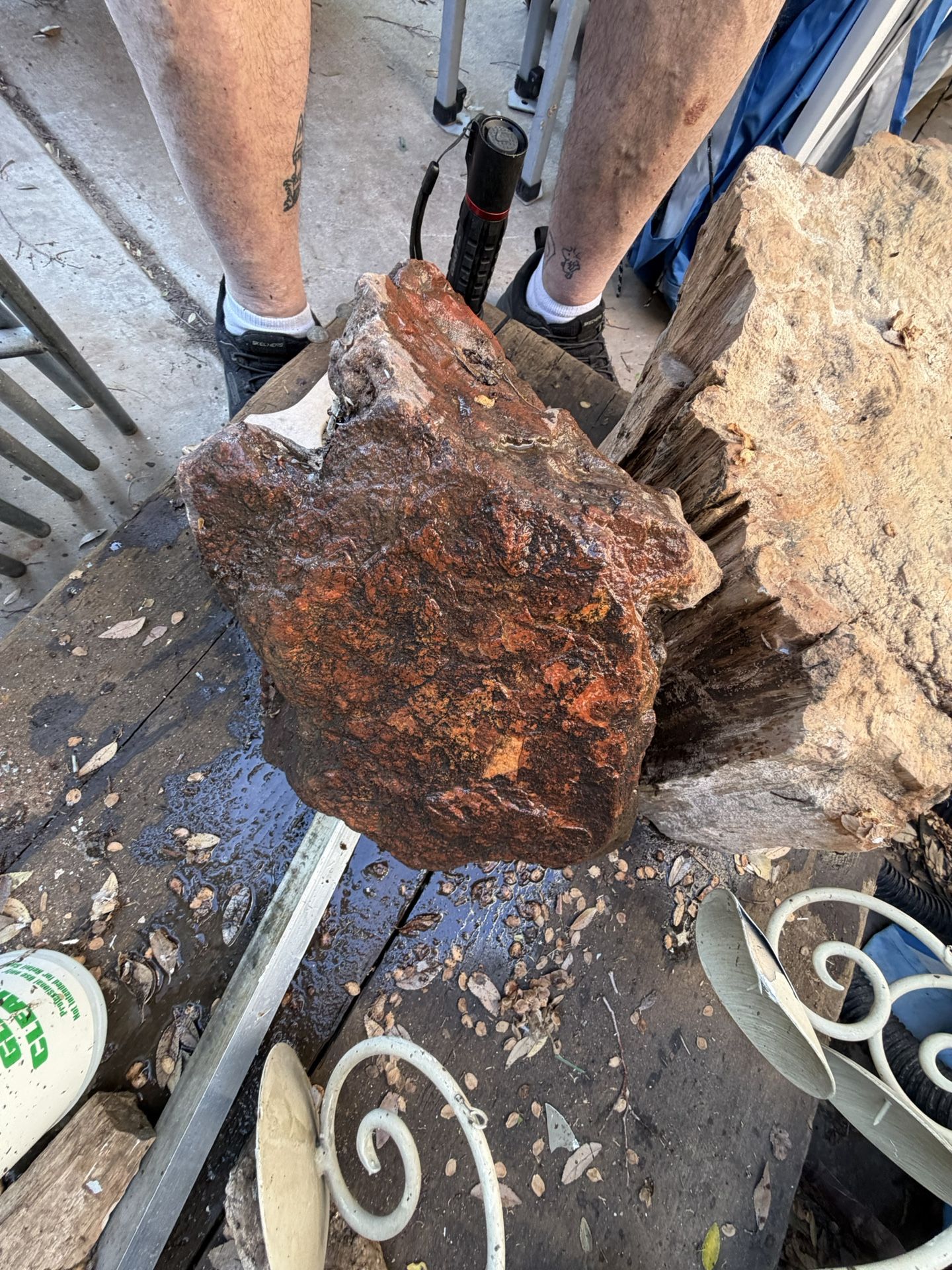 Is a pretty unique piece it’s pretty decent size probably about 10 pounds. You can see the measurement. This could probably be cut and polished to look beautiful.