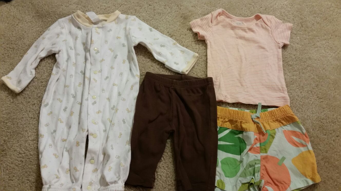 Newborn clothes, except orange shirt is 3 months. $1 each piece.