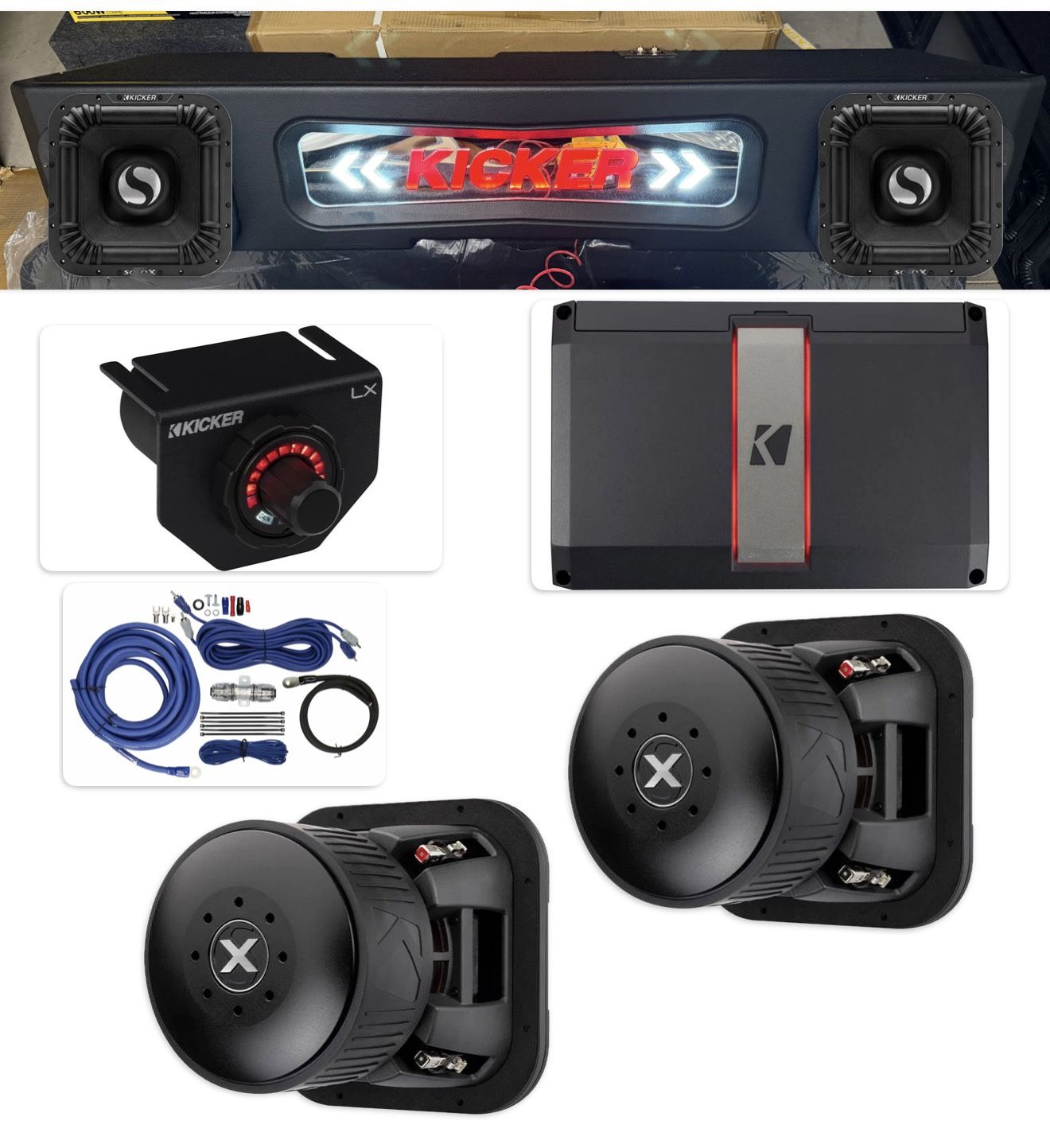 $2300 Firm NEW Installed ONLY FOR CHEVY SILVERADO OR GMC SIERRA 2019-2025 CUSTOM PORTED BOX 2 KICKER L7 SOLO X 8" SUBWOOFERS 3200 WATTS 1600 RMS Kicker amp lx series Bass knob control Amp kit wires Installed Keywords alpine kenwood kicker pioneer Rockford Memphis mtx jl audio hifonics sundown audio skar audio ds18